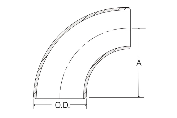 | 公称パイプサイズ | O.D. | 壁の厚さ | 長さ | 短い 半径 | |||